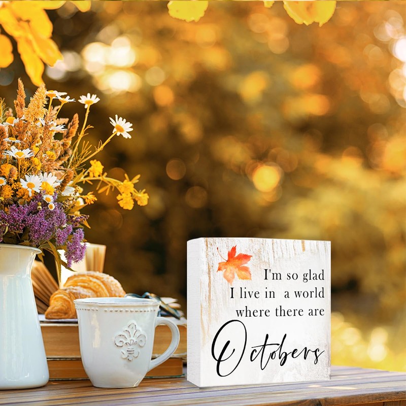 Funny Autumn Wood Box Sign Where there are Octobers Wooden Block Desk Decor for Home Office Kitchen Cubicle Table Shelf Tabletop,Farmhouse Fall Sign Decor