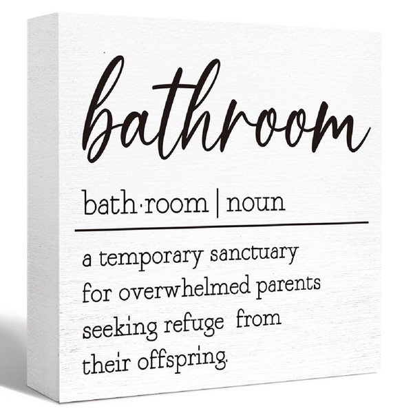 - [Funny Bathroom Quote Wooden Block Sign]: Our bathroom wooden block decor is printed with funny bathroom saying and rustic design add some humor to your bathroom with this vintage farmhouse style freestanding wood box sign.Humorous manner and the entertaining quotes are fantastic mood-boosters, Hilarious Bathroom Entertainment for you and your guests,where no one can hold back the laughter.