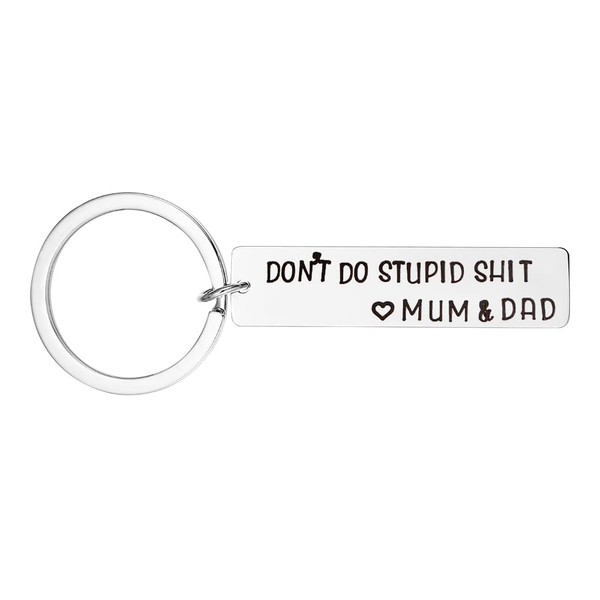 - Funny Daughter Son Birthday Christmas Gifts from Mum Dad: The daughter son keyring from mum and dad is engraved with don't do stupid mum & dad in cute font which is humorous, when you give this son daughter key ring to your son daughter, the father daughter keyring will always lead your son or daughter to do the right things in their life, daughter son gifts from mum dad
