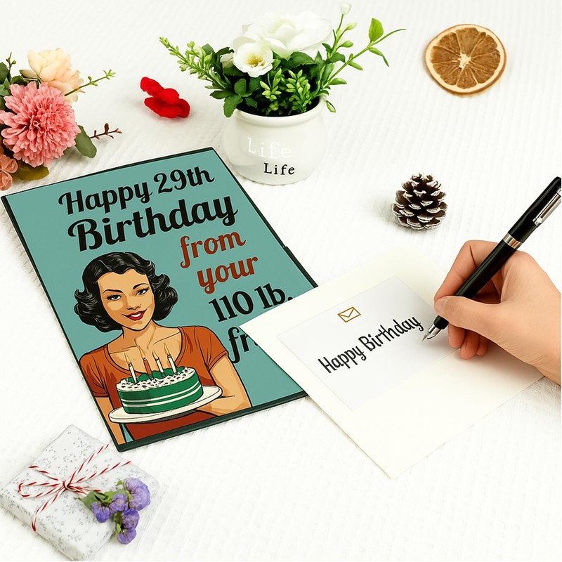 - FUNNY & UNIQUE – The cheeky message, "Happy 29th Birthday From Your 110lb Friend," makes this funny birthday card the ultimate choice for women who love to laugh and don't take life too seriously.