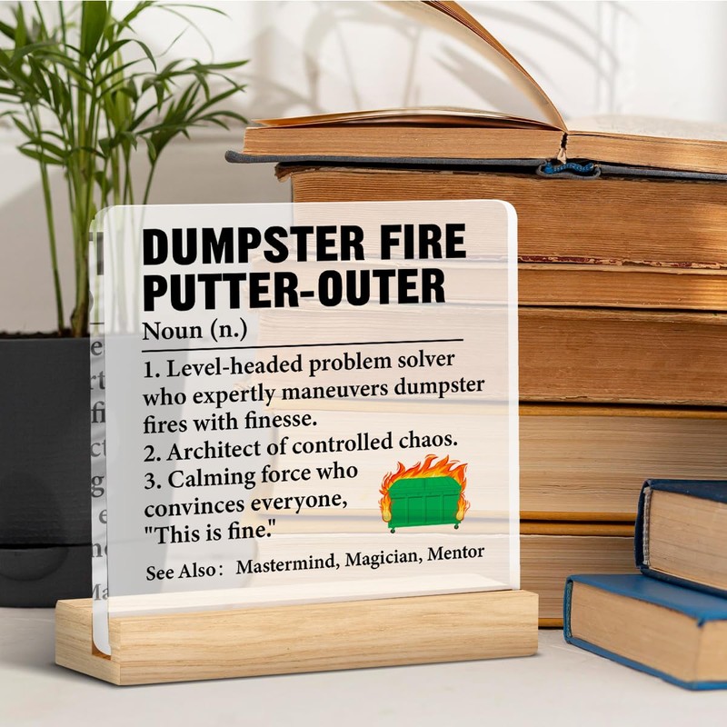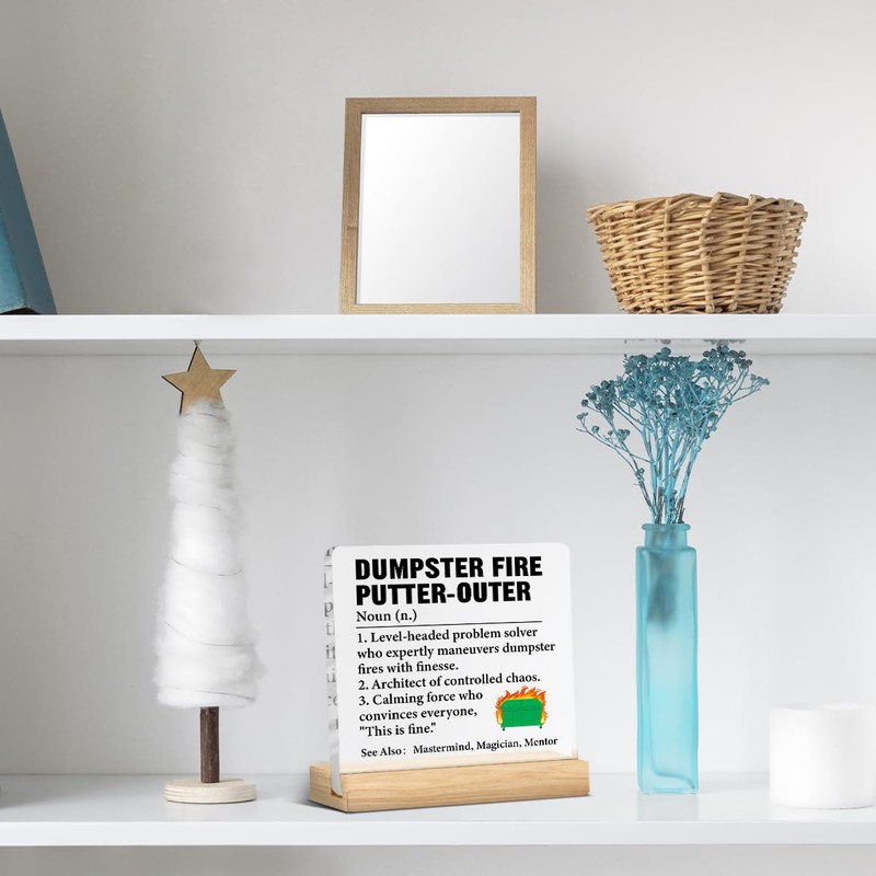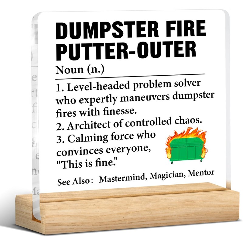Funny Boss Gift, Dumpster Fire Putter-Outer Acrylic Plaque Sign Gift for Boss Mentor Team Manger Director Supervisor