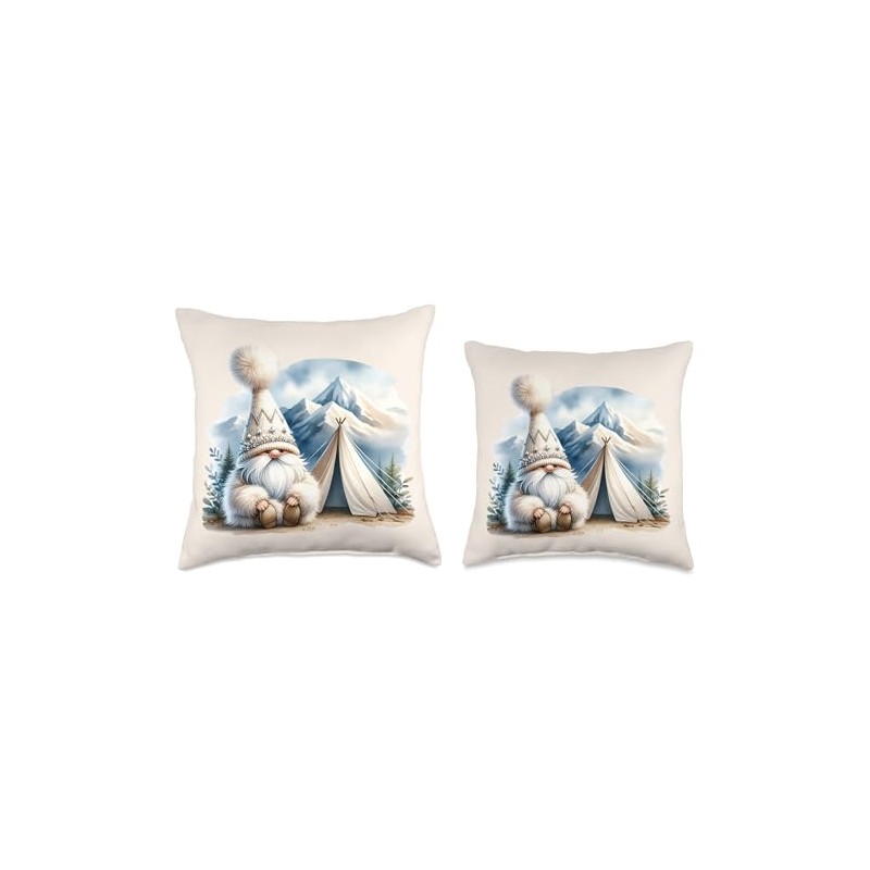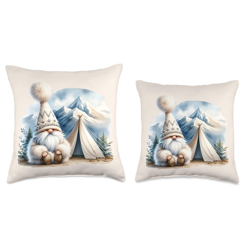 Funny Camper Gnome With Tent In The Mountains Love Camping Throw Pillow