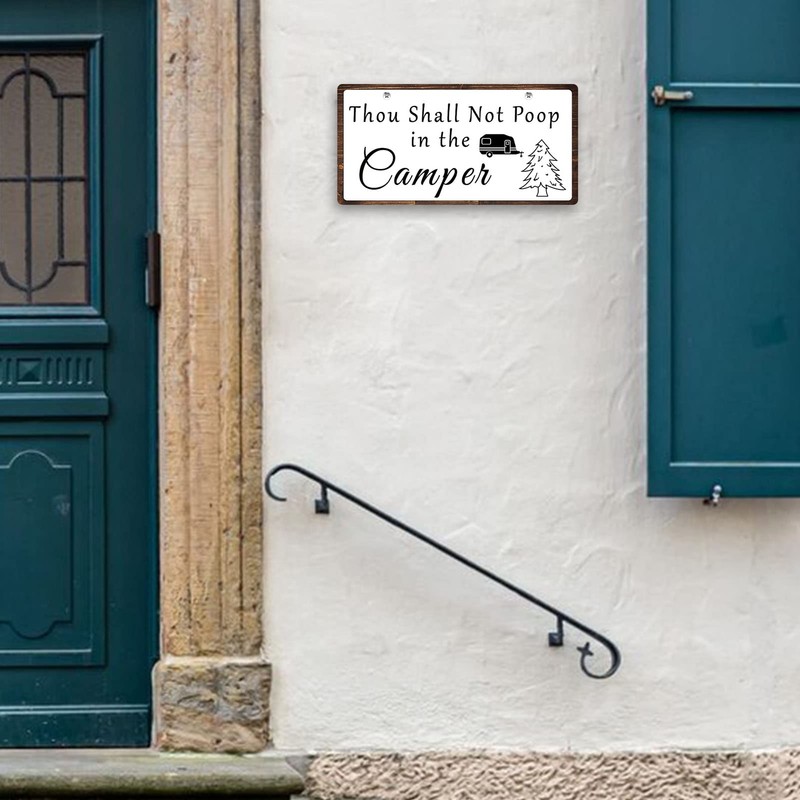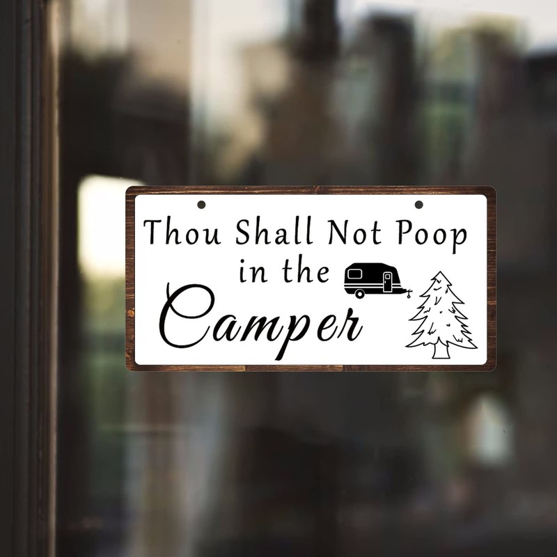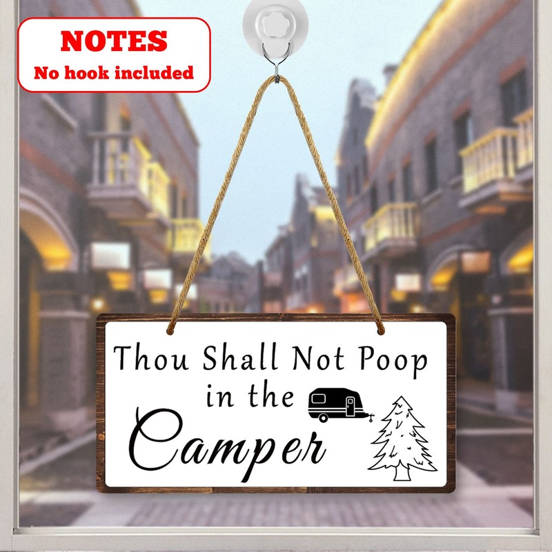 Funny Camping Sign No Pooping Hanging Sign 10x5 Inch Thou Shall Not Poop in the Camper Hanging Plaque Camping Sign Camper Decor Camper Bathroom Sign Wall Hanging Plaque Decor for RV Home Farmhouse