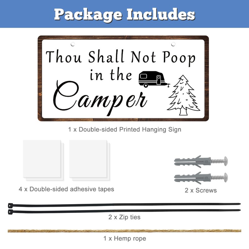 - The not poop in the camper sign can be hung on many places, for example you can hang it on the wall or door of tourist attractions, farmhouse and so on, making people keep in order