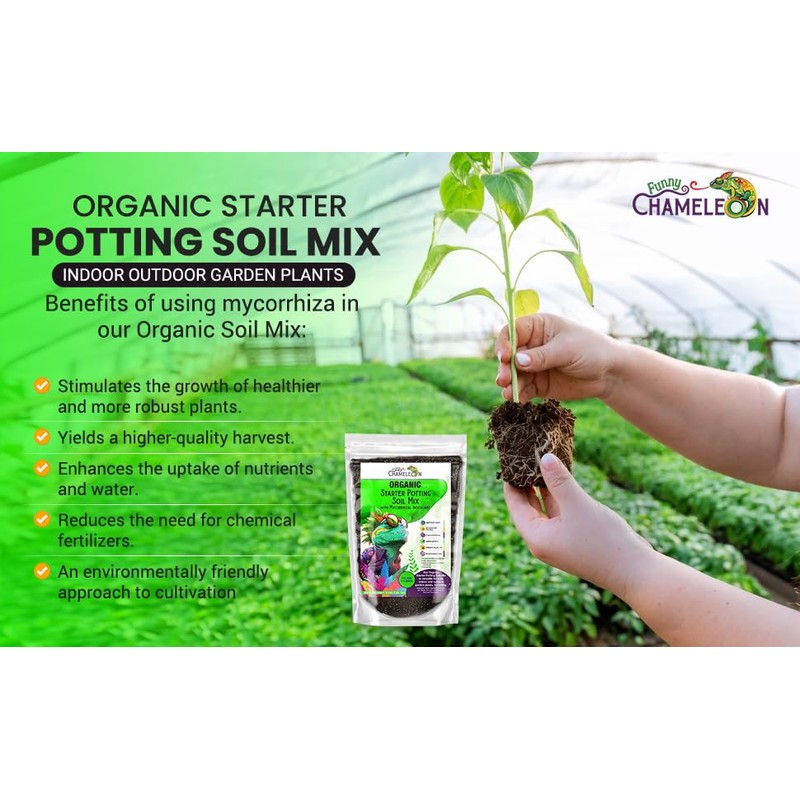 - 🍄 RAPID ROOT GROWTH WITH MYCORRHIZAL INOCULANT: Funny Chameleon Potting Soil Mix accelerates root development, providing your plants with a strong foundation for healthy growth. Whether you're starting from seeds or transplanting clones, expect quicker and stronger root systems. Our mix is enriched with mycorrhizal inoculant, fostering a symbiotic relationship between fungi and plants. This enhances nutrient uptake, water absorption, and plant resilience, resulting in healthier and more robust.