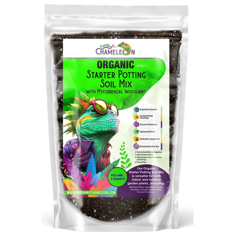 Funny Chameleon Organic Starter Potting Soil Mix with Mycorrhizal Inoculant for Fast Germination, Vigorous Seedlings, Strong Root Systems, Ideal pH, Disease Resistance (2 QUARTS)