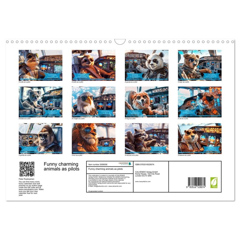 Funny charming animals as pilots (Wall Calendar 2026 DIN A3 Landscape), CALVENDO 12 Month Wall Calendar: A must for all pilots who want to start the day with a smile (CALVENDO Mobility)