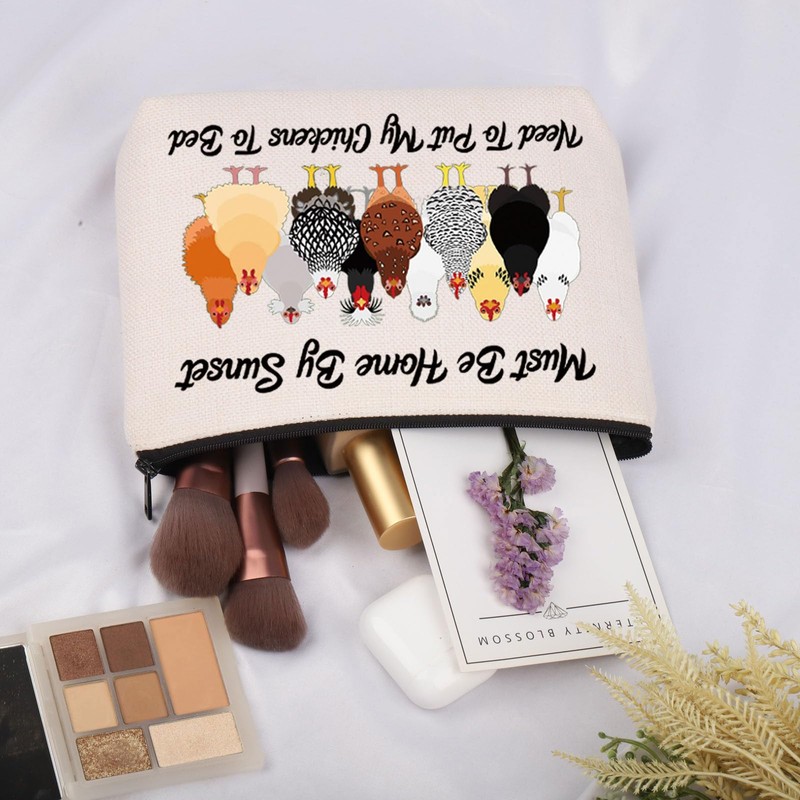 Funny Chicken Gift Must Be Home by Sunset Need to Put My Chickens to Bed Cosmetic Bag Farming Gift (Chickens to Bed CA Bag)