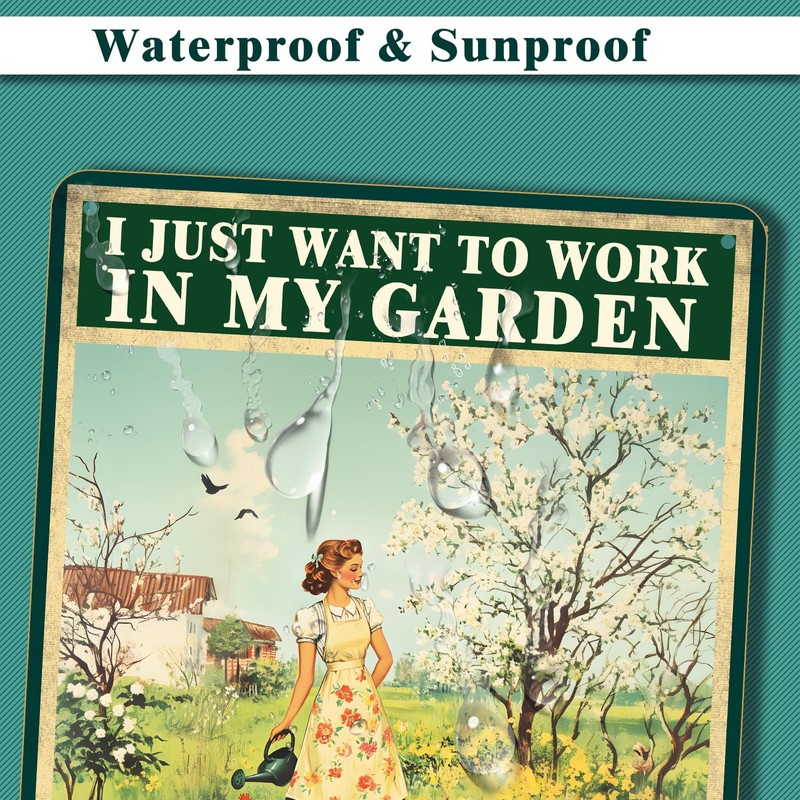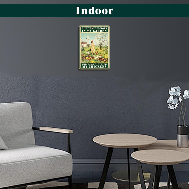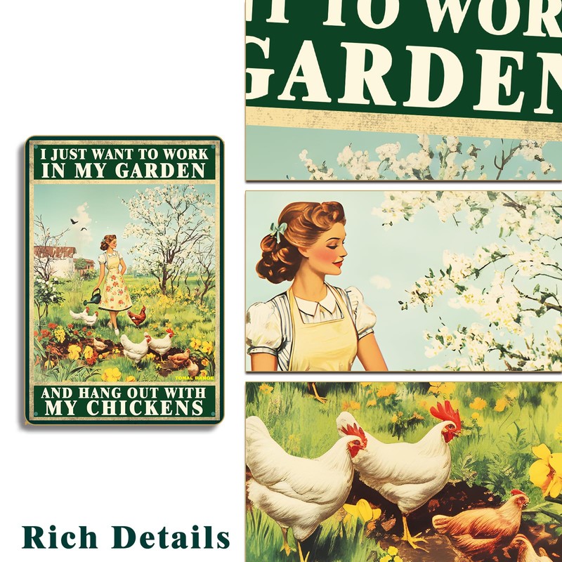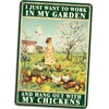 Funny Chicken Sign Chicken Coop Yard Sign Wall Decor, Oil Painting Style - "I Just Want To Work In My Garden and Hang Out With My Chickens"
