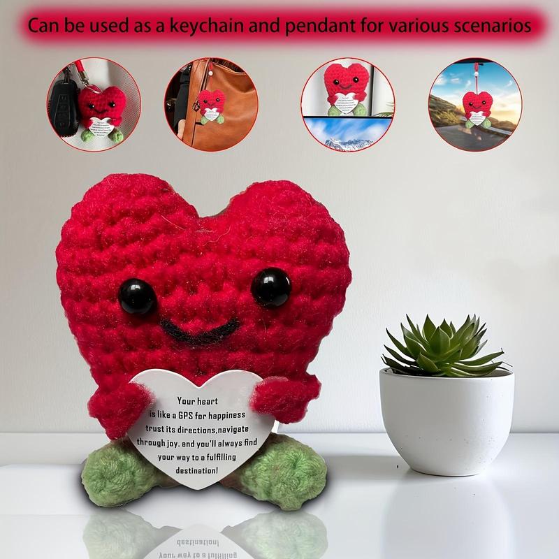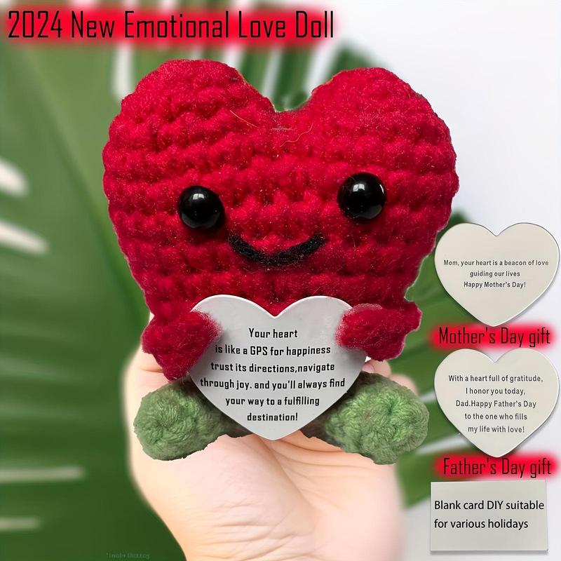Funny Crochet Emotional Support Love with Positive Card, Cute Knitted Wool Doll, Cheer Up Toy for Birthday Party Decoration and Encouragement