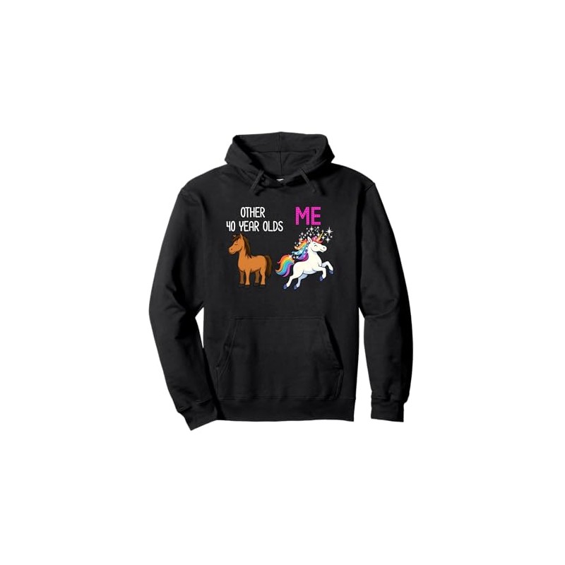 - Celebrate turning fabulous 40 with this cute and funny 40 year old birthday design! Featuring a side-by-side of a regular brown horse labeled “Other 40 year olds” and a confident, rainbow-haired unicorn jumping under the word “Me”, style, flair & wild