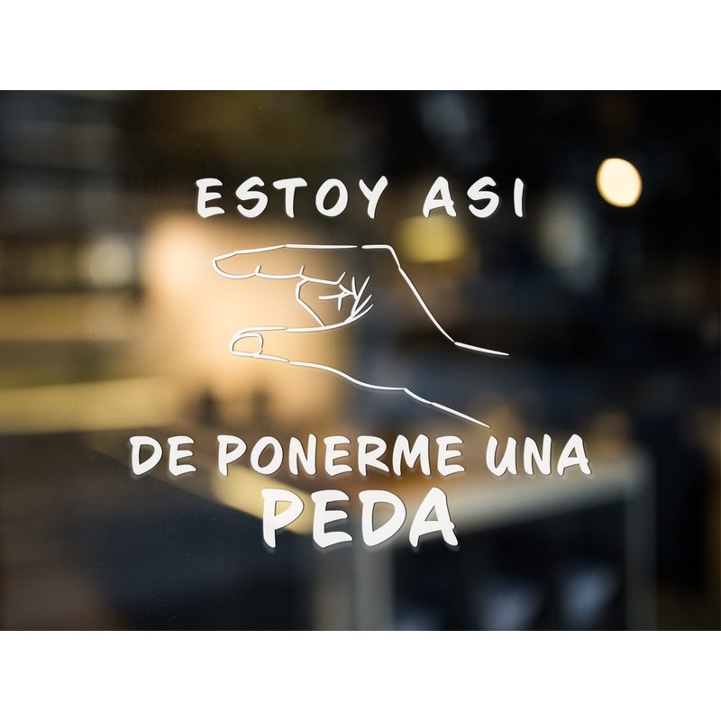 - Mexican slang funny decal in Spanish. Calcomania para carro graciosa para borrachos. Estoy así de ponerme una peda.