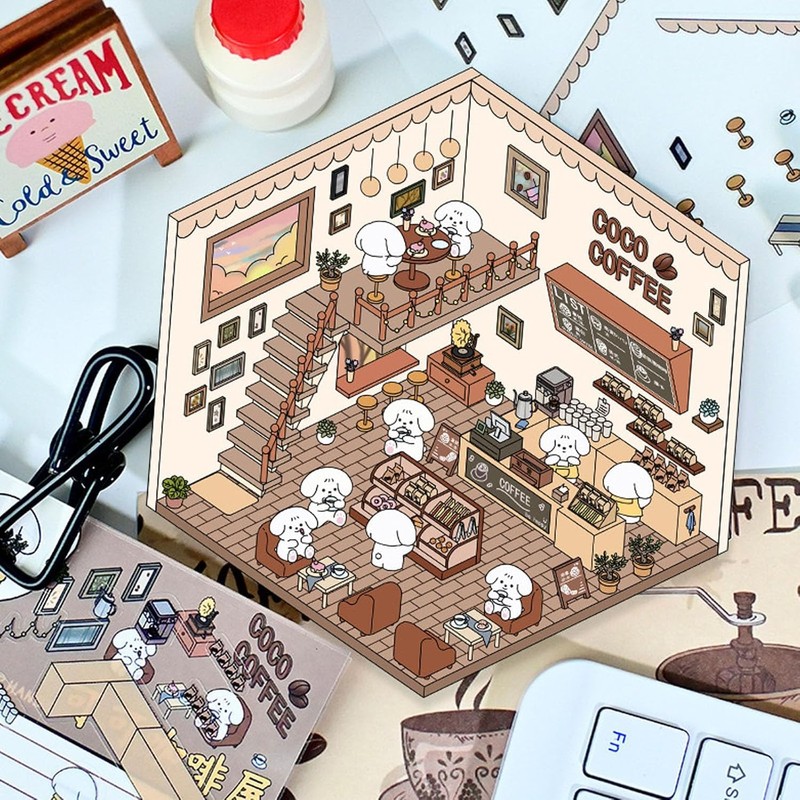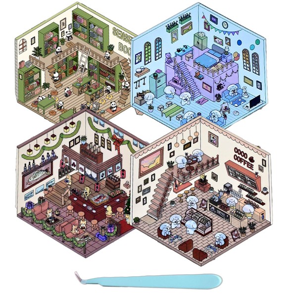- 【DIY 3D House Stickers】: Our dIY 3d sticker scene offer a world of creativity with multiple unique themes to choose from. Whether you’re dreaming of a cozy bookstore or a bustling coffee shop, you can rearrange and personalize each scene to match your imagination and style.