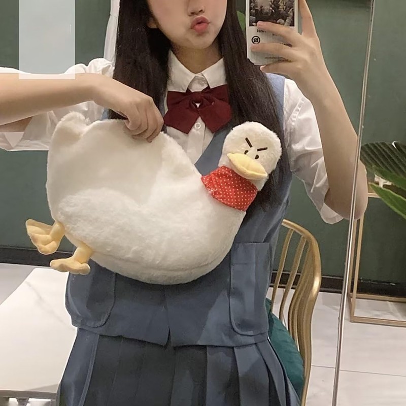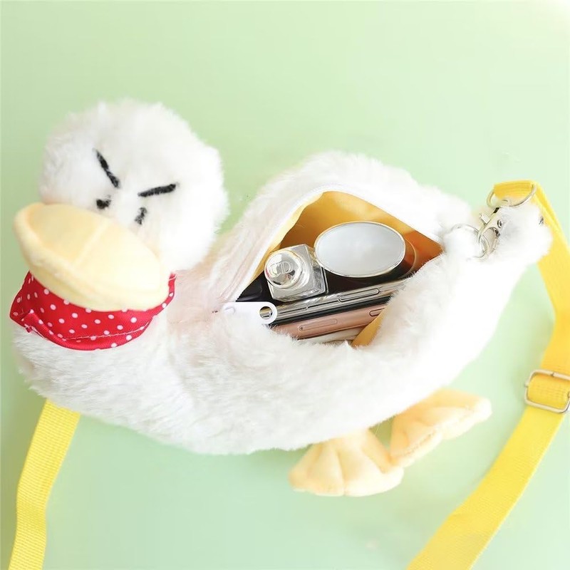 Funny Duck Tote Bag for Women,Kawaii Cute Duck Purse Shoulder Fuzzy Bag Animal Cartoon Chest Wallet Novelty Fluffy Bag Unique Canvas Plush Bag
