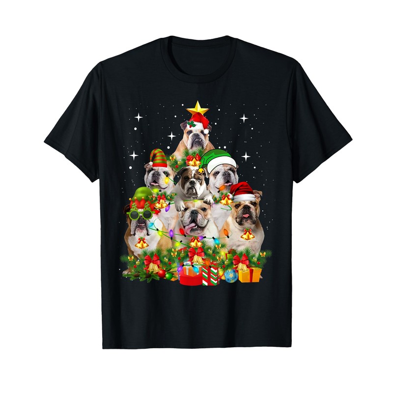 - A great gifts for English Bulldog lovers and holiday enthusiasts. This Christmas tree-themed costumes adds joy to family photos, office parties, or cozy home celebrations. Spread the holiday cheer with this festive graphic design.