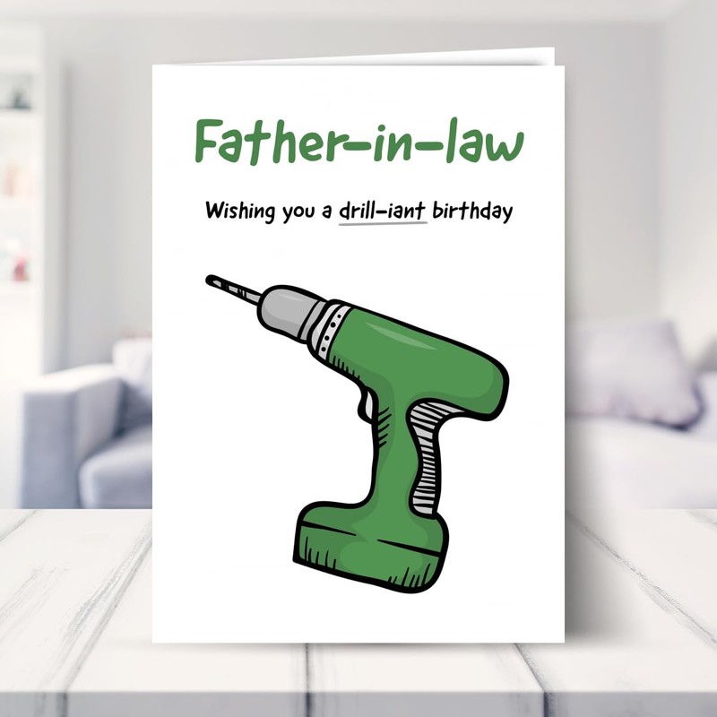 Looking for the perfect birthday card to make your father-in-law's day truly special? Our funny father-in-law birthday card for him - Have a Drill-iant Day! is just what you need to bring a smile to his face.