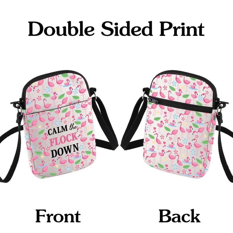 Funny Flamingo Gift Calm The Flock Down Flamingo Crossbody Bag Fun Flamingo Party Gift Flamingo Lover Gift, White