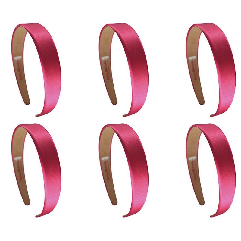 Funny Girl Designs Satin Headband SET OF 6 1 Inch wide Satin Fabric Lined Arch Style Headbands (HOT PINK)
