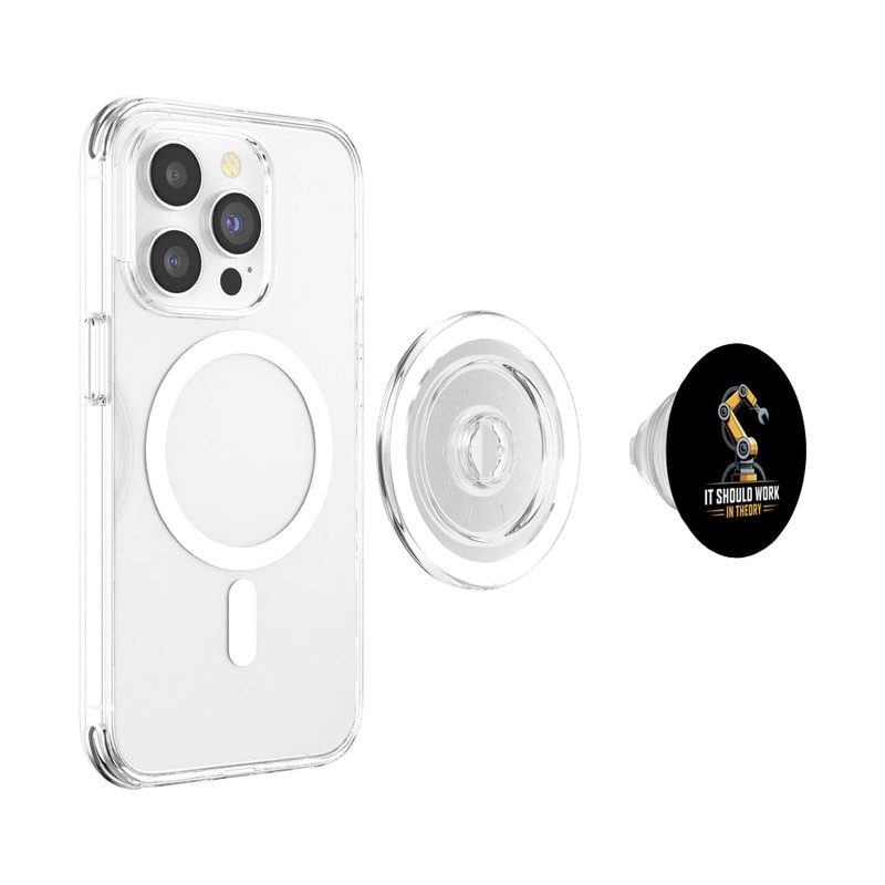 Funny Graphic It Must Work In Theory Funny Worker Hand Robot PopSockets PopGrip for MagSafe