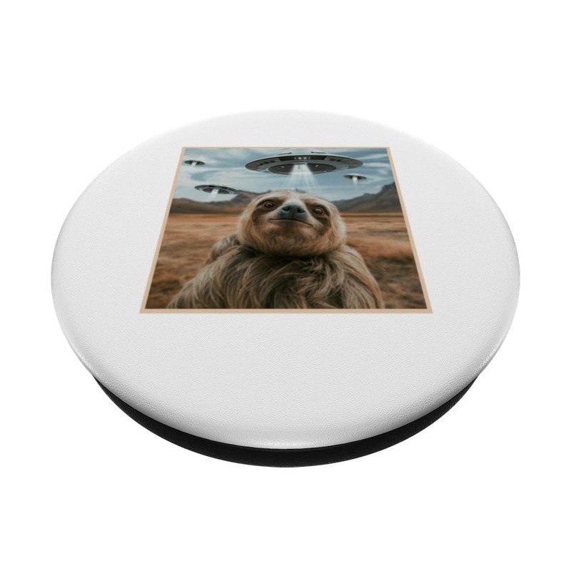 Funny Graphic Tee Sloth Selfie with UFOs Weird PopSockets Standard PopGrip