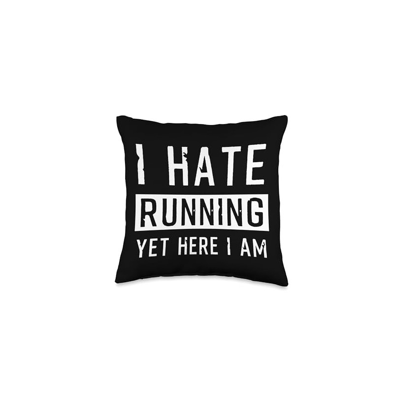 Funny Hate Running Yet Here Runner Joke Marathon Sportsman Throw Pillow