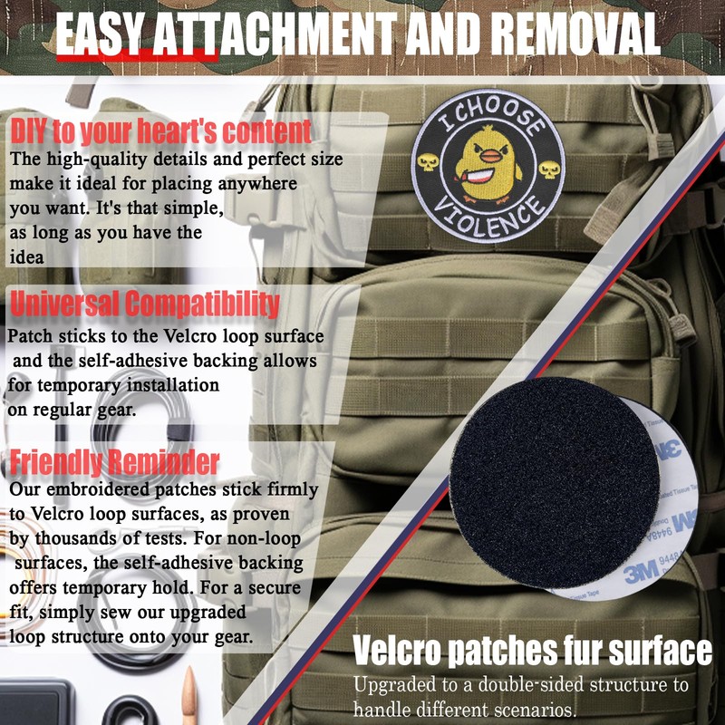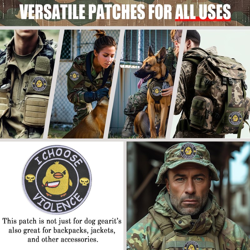 - Unique & Funny Design(copyright: VA0002434347):Add a playful touch to your gear with our 3" x 3" "I Choose Violence" morale patch. This funny embroidered patch is perfect for vests, harnesses, backpacks, and more, letting both you and your pet show off a bit of humor.