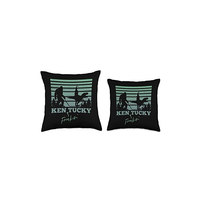 Funny Kentucky Trex Sasquatch Men Boys Women Girls Kentucky Bigfoot Walking T-Rex and Gnome Freakin Funny KY Throw Pillow, 16x16, Multicolor