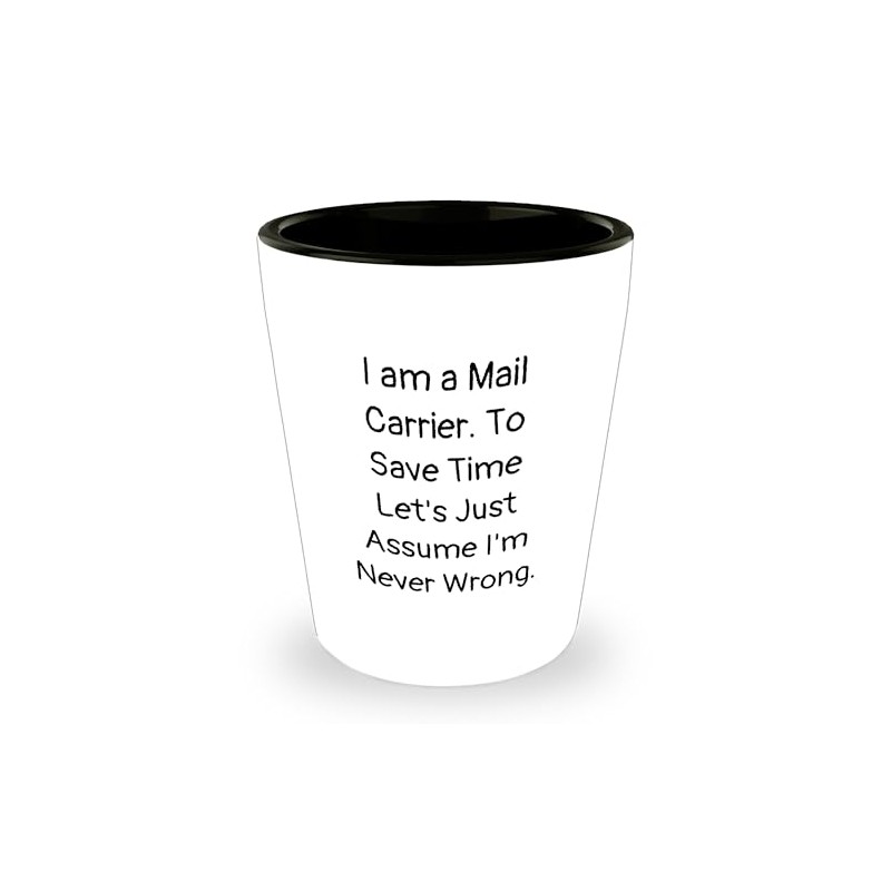 - Show off your love for Mail Carriers with this unique shot glass, designed to make a statement and bring a smile to the face of your favorite Mail Carrier. The quote 'I Am A Mail Carrier. To Save Time Let's Just Assume I'm Never Wrong.' is a bold statement that shows you're proud to support their hard work.