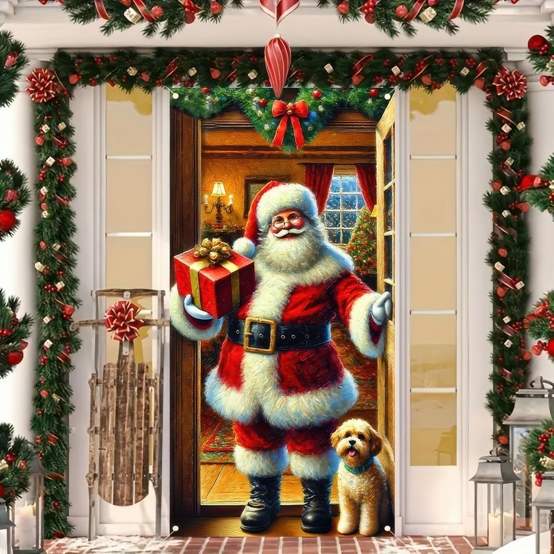 - Santa Claus Design: We selected a festive design featuring Santa Claus and a cute little dog at the door, bringing warmth and joy to your home. This charming design adds a delightful holiday spirit, making it an ideal choice for creating a welcoming festive atmosphere.