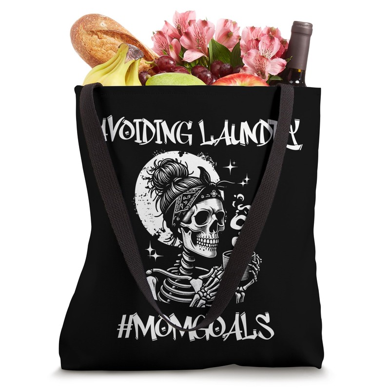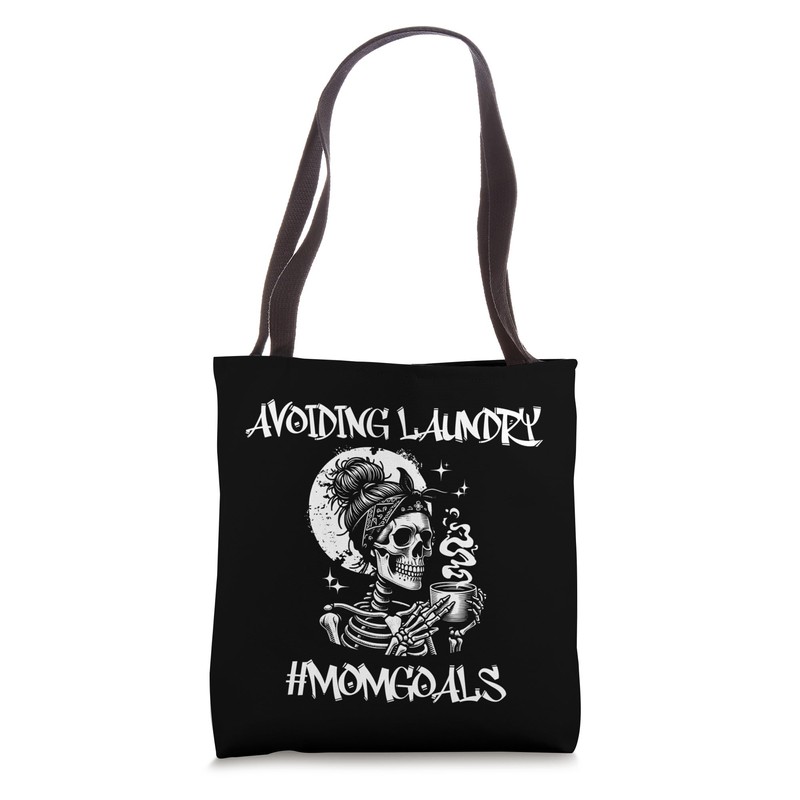 Funny Mom Life Avoiding Laundry Skull Coffee Tote Bag