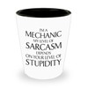 - This funny shot glass features the clever saying 'My level of sarcasm depends on your level of stupidity.' It's a great conversation starter for any gathering, making it a unique gift for mechanics and anyone who appreciates humor.