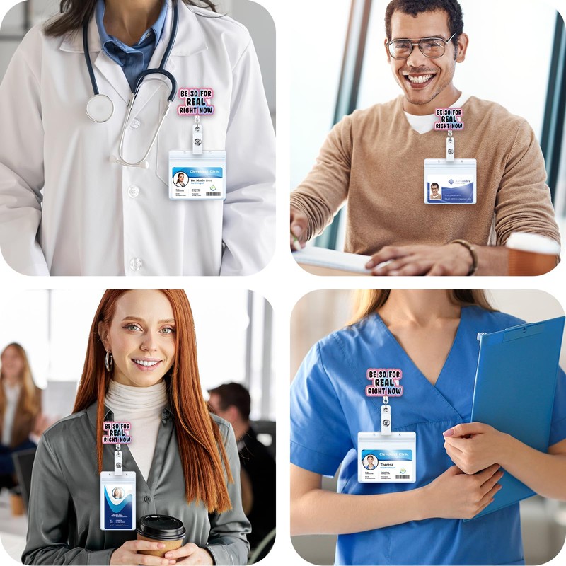 Funny Nurse Badge Reel, BE SO for Real Right Now RN Badge Buddy, Cute ID Work Badge Holder with Retractable Alligator Clip for LPN CNA MA Nurse Doctor Nursing Student Teacher, and Medical Workers