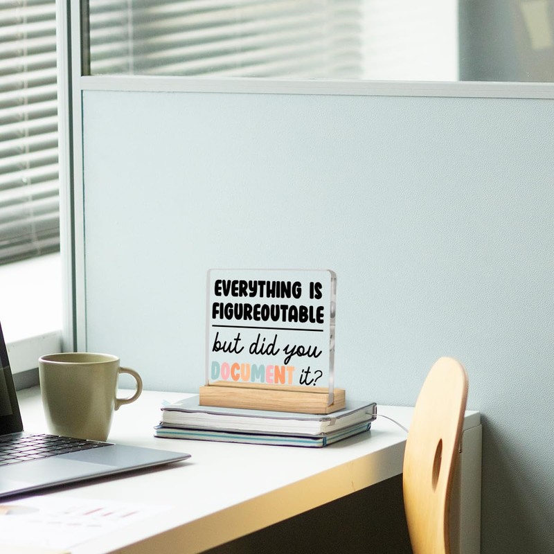 Funny Office Decor Inspirational Gifts for HR Coworkers Colleague Everything Is Figureoutable but Did You Document It Acrylic Desk Plaque Sign