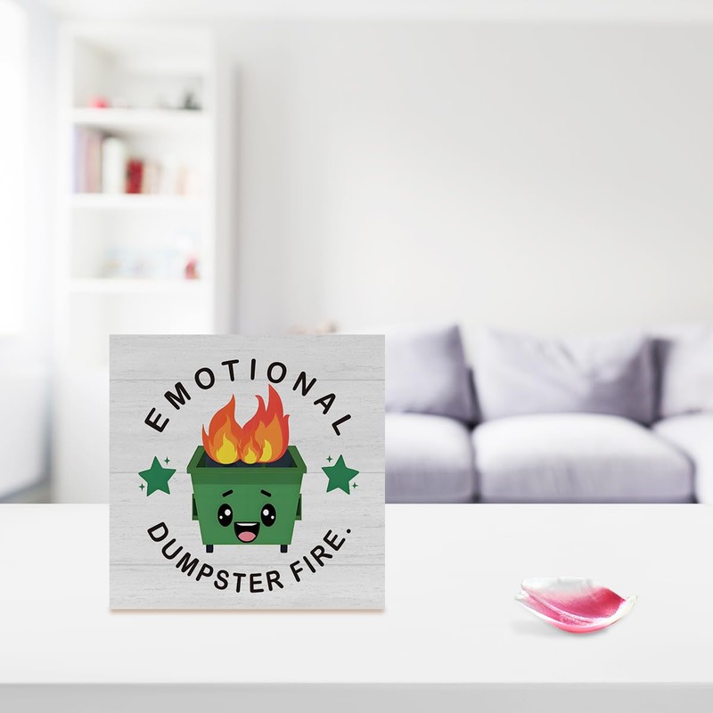 Funny Office Desk Decor Inspirational Office Gifts for Women Men Coworkers Boss Friends Employee Appreciation Gift Emotional Dumpster Fire Sign Desk Accessories 5x5 Inch