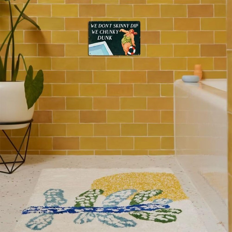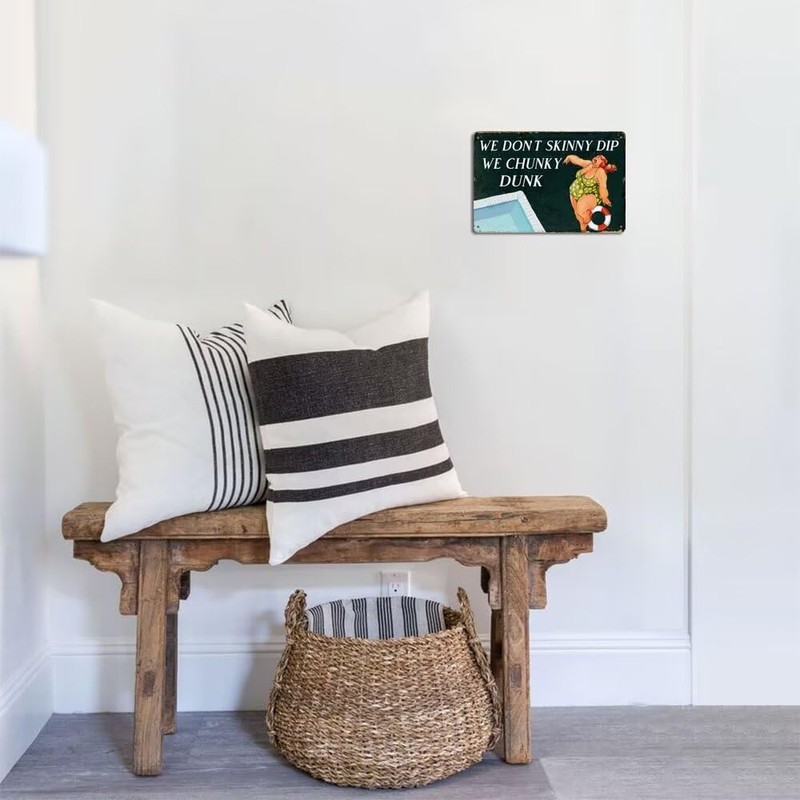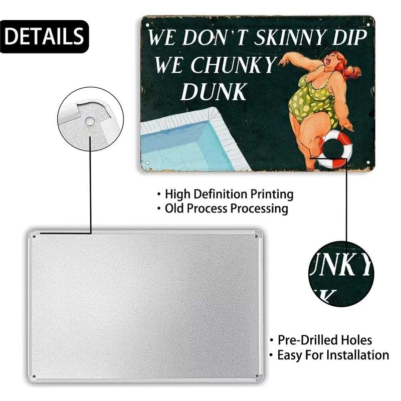 Funny Outdoor Pool Metal Sign We Don't Skinny Dip We Chunky Dunk Tin Sign Retro Swimming Pool Decor For Beach Hut Home Backyard Garden Outdoor Signs 8x12 Inch