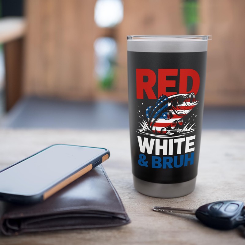 Funny Patriotic Fishing Red White & Bruh For 4th Of July Stainless Steel Insulated Tumbler