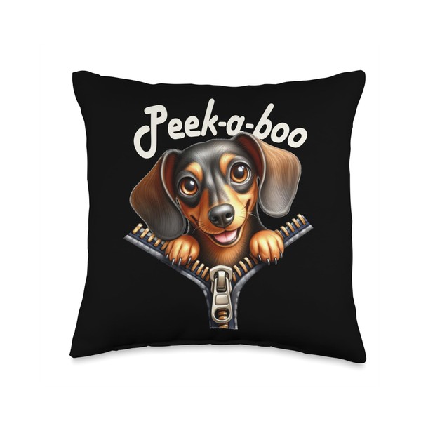 Funny - Peek-a-boo - Dachshund Throw Pillow
