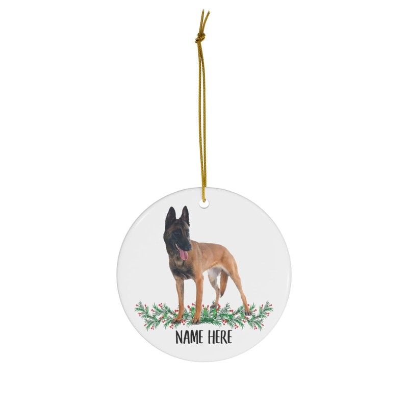 Funny Personalized Name Belgian Malinois Red Brown Gifts 2024 Christmas Tree Ornaments Circle Ceramic
