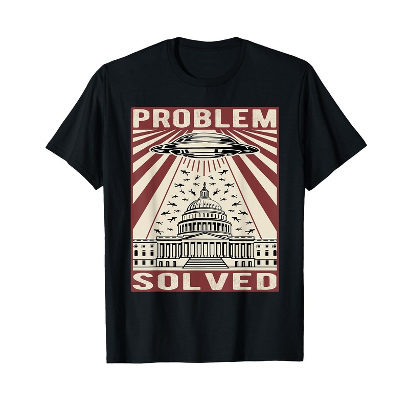 Funny Political Humor, Problem Solved Alien UFO Sarcastic T-Shirt