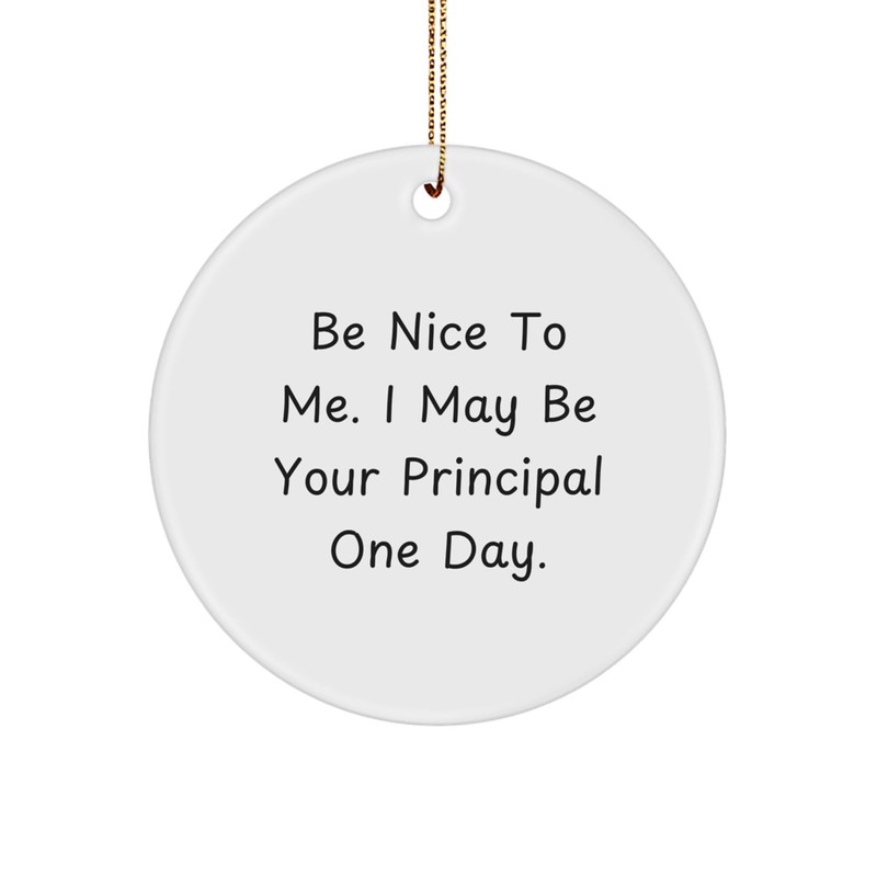 Funny Principal Gifts from Men - Be Nice to Me. I May Be Your Principal One Day. Circle Ornament for Christmas