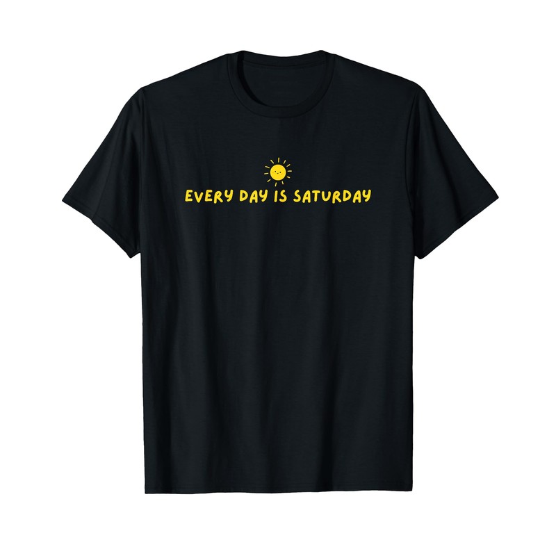 - This cute design show a smiling happy sun and the text "Every Day Is Saturday" underneath it. Great outfit and present if you are happily retired and enjoying life.
