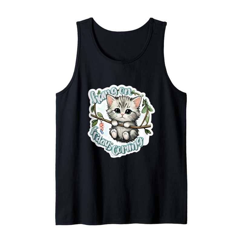 funny retro kitty cat HANG ON FRIDAYS COMING office humor Tank Top