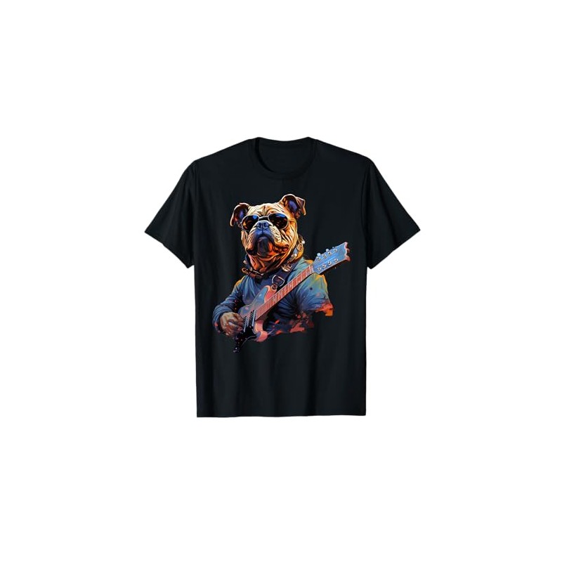 - Made for men and teen boys who appreciate a Concert session, this electric guitar tee will have you strumming along with the coolest English Bulldog in town.