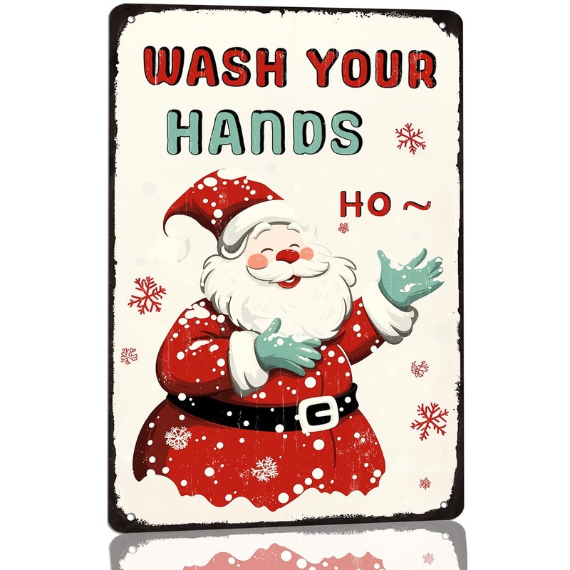 Funny Santa Claus Theme Bathroom Metal Signs,Wash Your Hands Christmas Decor,Home Wall Art Decor for Kitchen,Toilet Restroom Cafe Bar Ideal for Christmas Gift 8x12 Inch