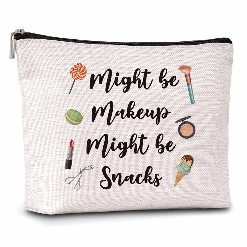 Funny Snacks Makeup Bag For Woman, Might Be Makeup Might Be Snacks Cosmetic Bag, Food Lover Gift Bag, Snacks Makeup Zipper Bag, Birthday Gifts For Family Friends Sister BFF, A32