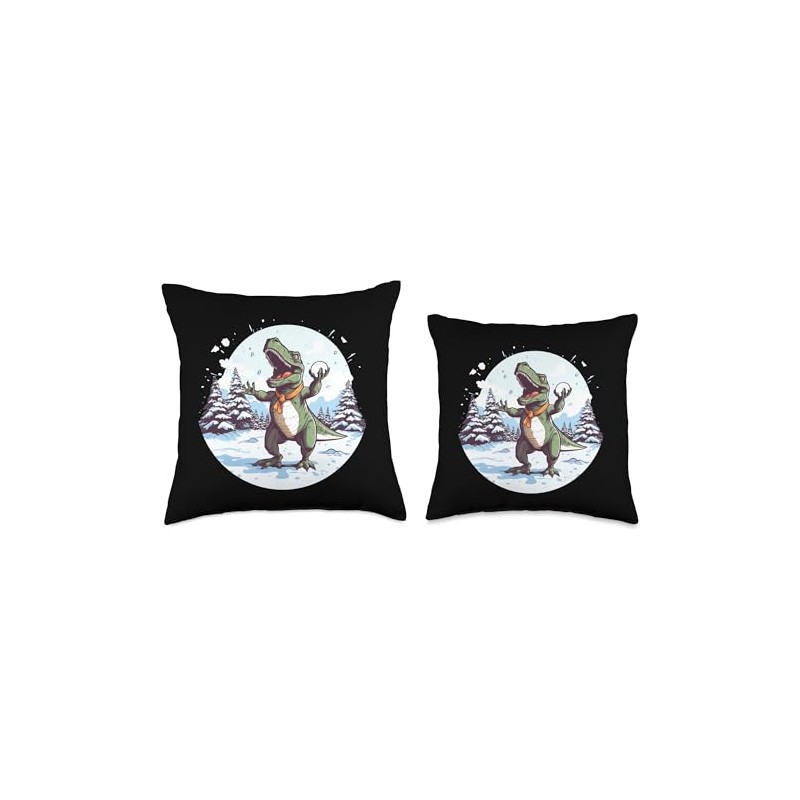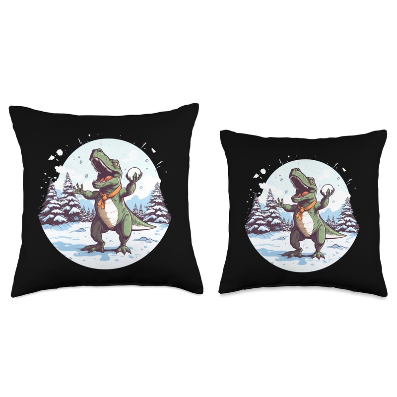 Funny Snowball Fights Funny T Rex Dinosaurs Snowball Fight Lovers Throw Pillow, 16x16, Multicolor