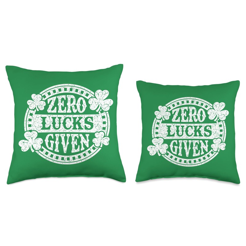 Funny St. Patrick's Day, Irish, Shamrock, Zero Lucks Given Throw Pillow