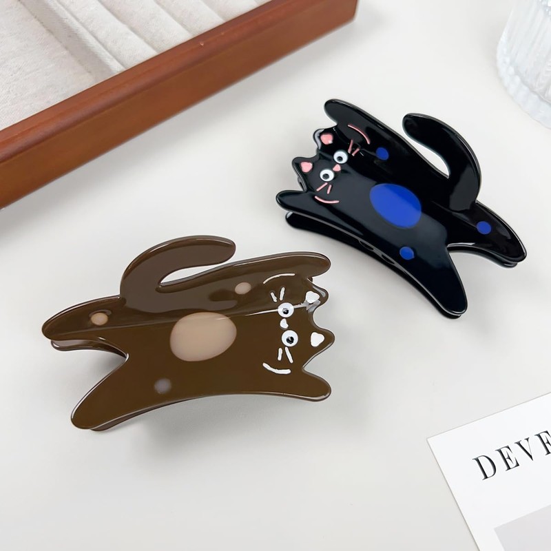 Funny Standing Cat Hair Clip,Acetate Claw Clips,Hair Clips for Women (Coffee, One size)