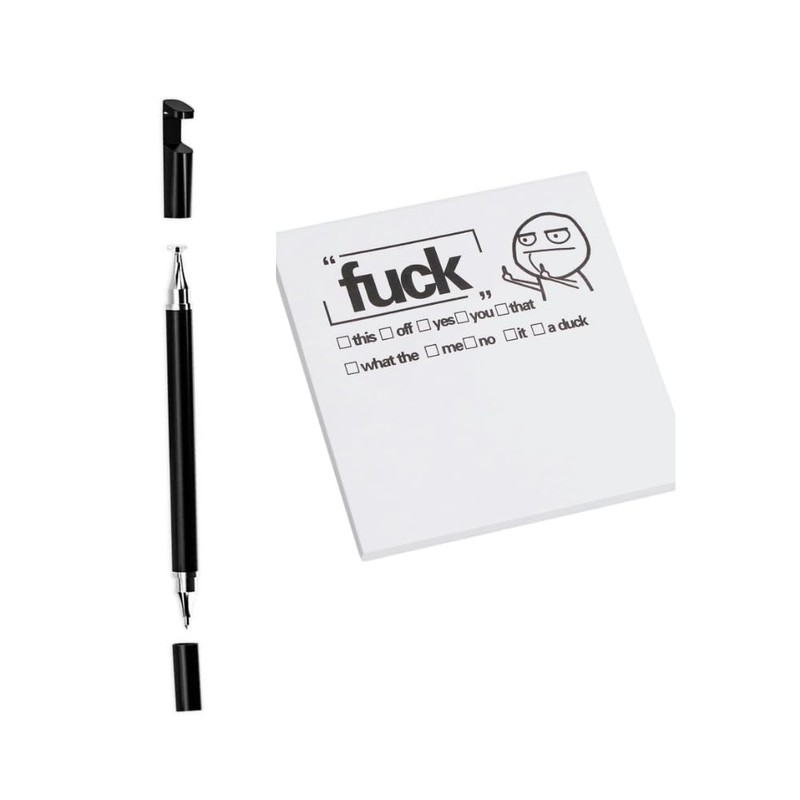 - Product Features:The pen is not just an ordinary writing instrument. It can be used for writing, works as a stylus for touchscreens, and even serves as a phone stand. The notepad features snarky and funny phrases, adding a touch of humor to your daily tasks. Product Usage Scenarios