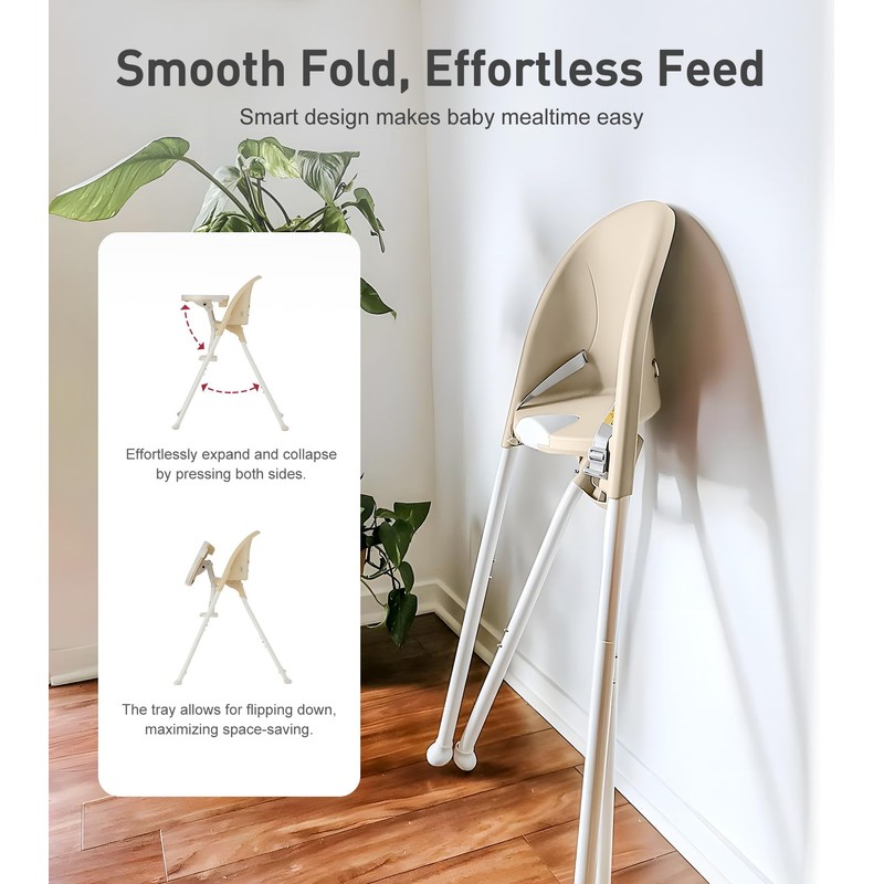 Funny Supply 3-in-1 Cute Folding High Chair, High Chairs for Babies and Toddlers, Modern Space Saving Highchair with Removable Double Tray, Easy to Clean, Light Weight Baby Feeding Chair, Cream